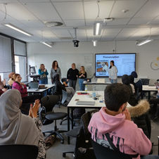 Noin kello 10 me tulimme Roskilden koulun. Meidät tapasi Roskilden opettaja (Kristiina). Me tutustuimme Kristiinan opiskelijoiden kanssa ja näytimme meidän esitykset heille ja he näyttivät esitykset meille. Me puhuimme Suomen ja Tanskan eroista. Huomasimme, että meillä on monta yhteistä sekä eroja!